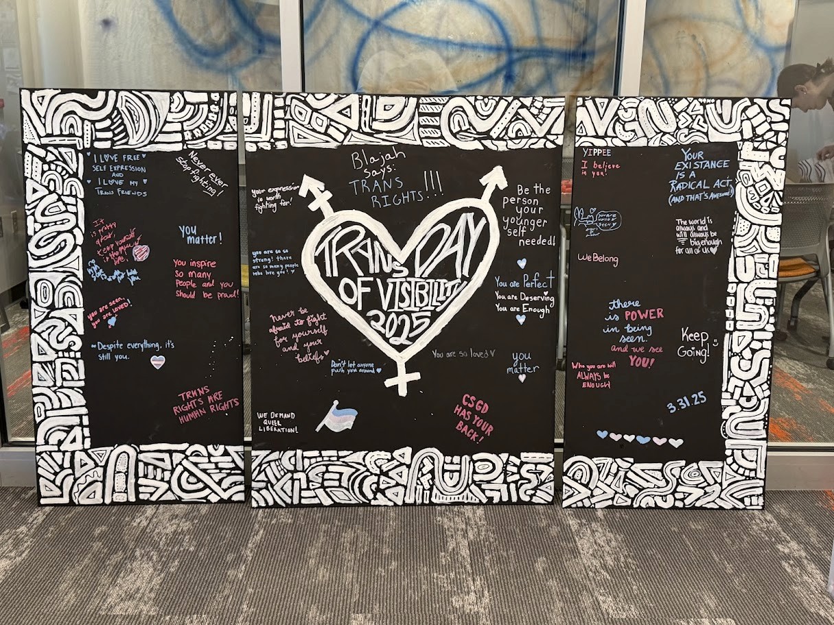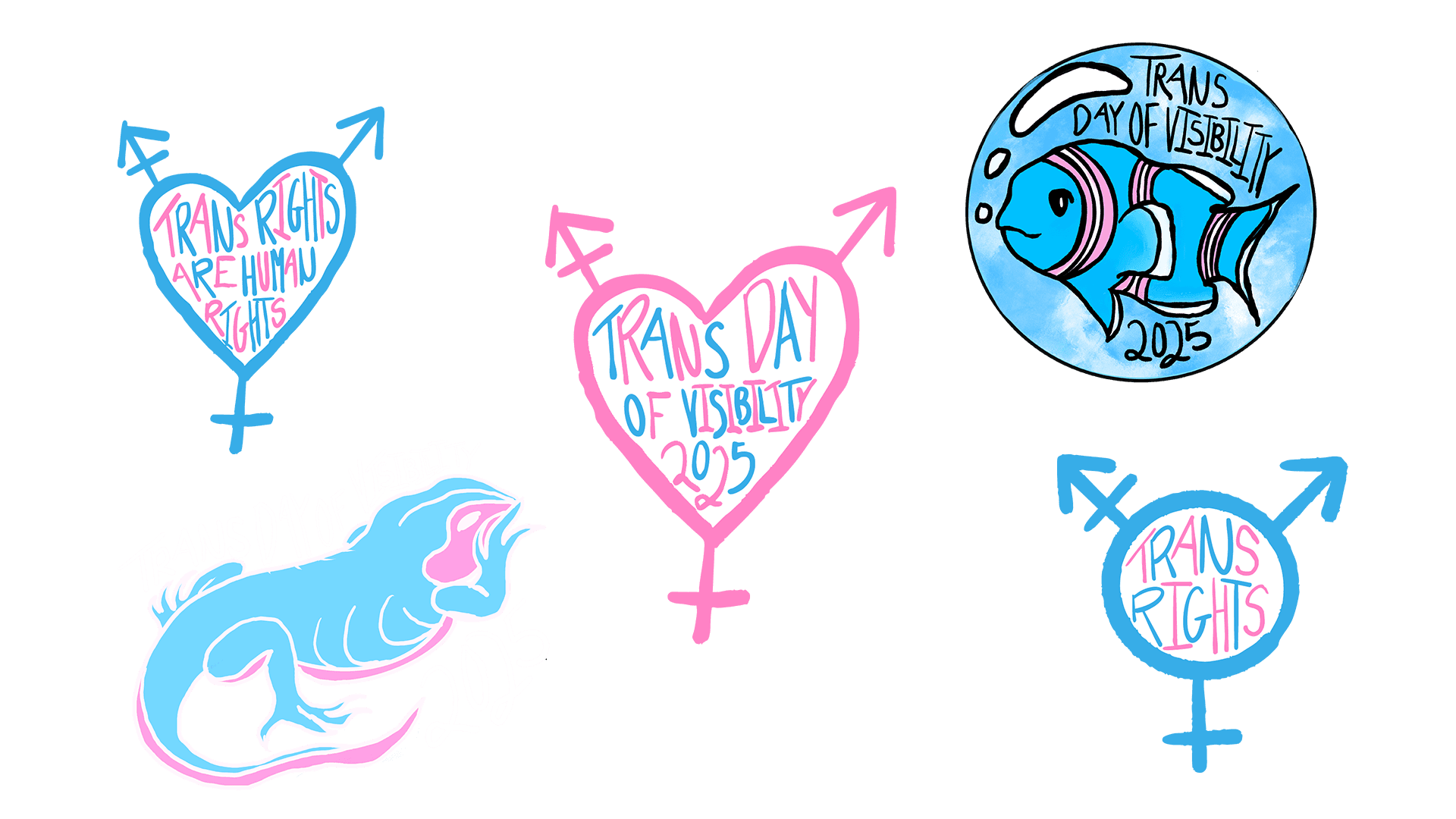 In 2025, I was given the privilege of helping run and design the brand for the CSGD's first Trans Day of Visibility Celebration. This required the creation of a logo, unique stickers, networking for a donor drive, and the creation of a unique marketing centerpiece. I chose to create a hand-drawn aesthetic and curate a very specific style of sticker and graphic. Alongside this, I designed a community art wall. I hand painted the three-panel wall, inviting local organizations to participate in our clothing drive and then signing the wall. The work I created for this event can be seen more here, and the impact it had can be read about here!