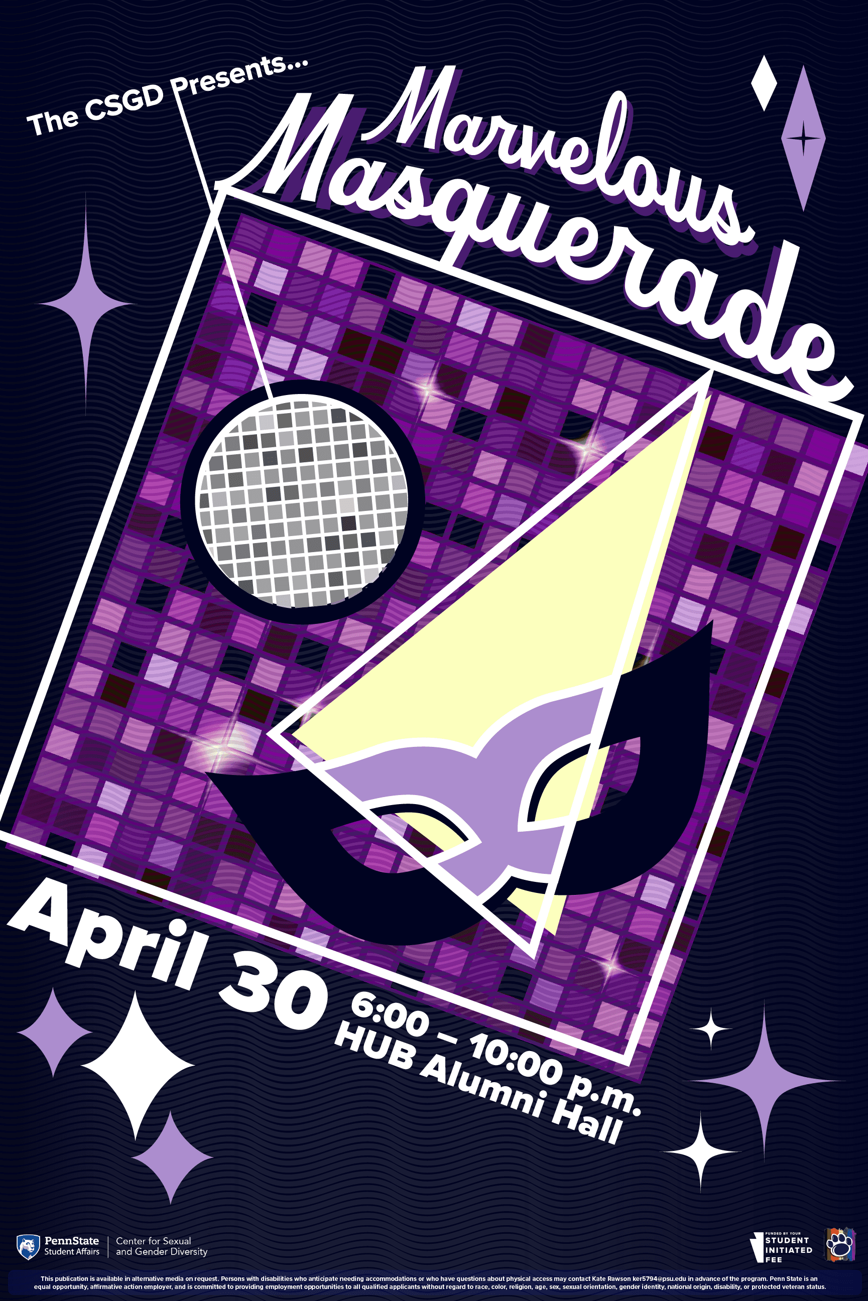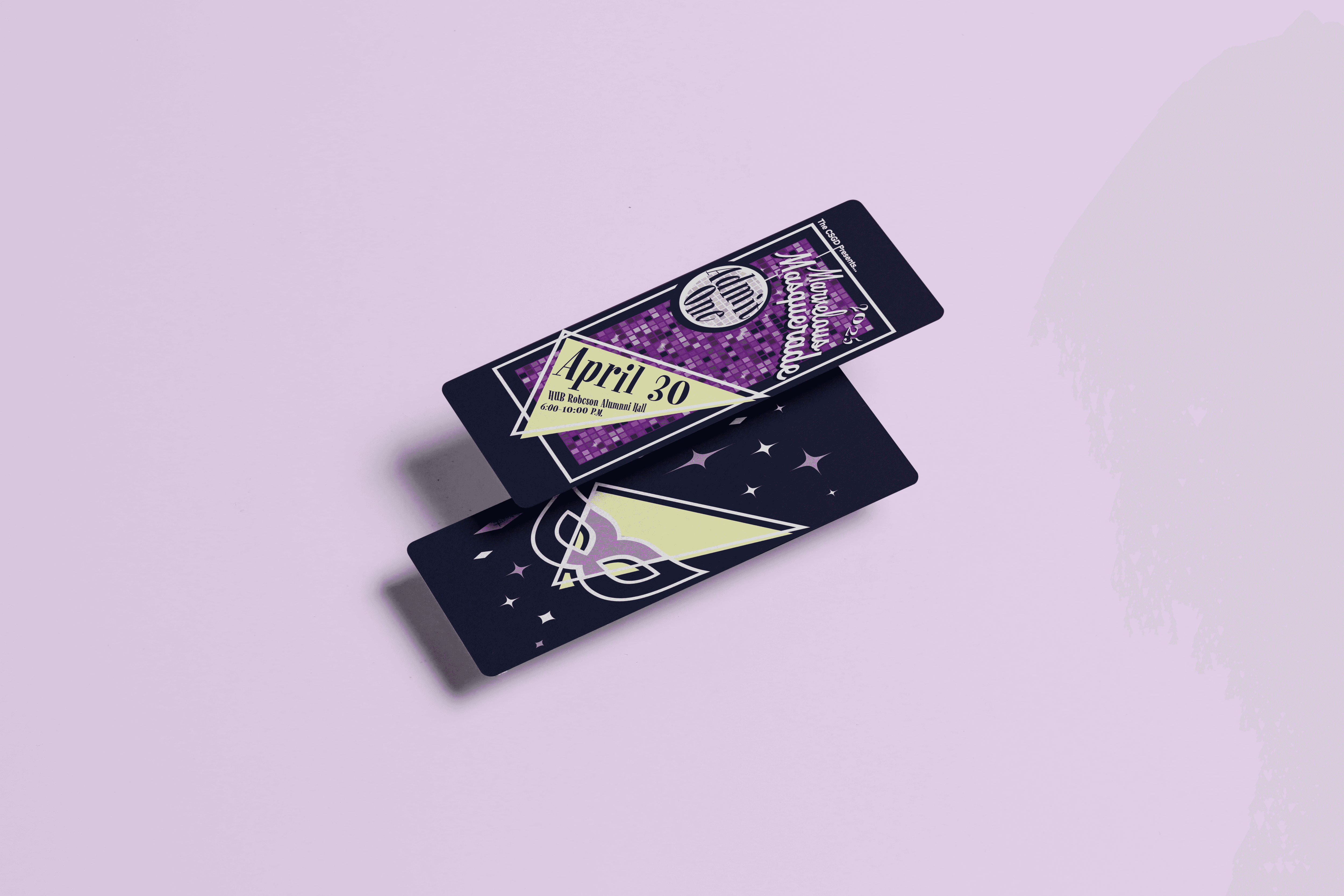 The Pride Prom was an event centered around the glamourous masquerade. Working with the programming department, they requested a suite of RSVP's alongside a commemorative ticket within the visual style of the 60s. I took an inspiration from whimsical Bauhaus language and gave it a jewel-toned disco twist. Overall, the event was a success and the commemorative tickets were all taken home! Below are the assets I created.